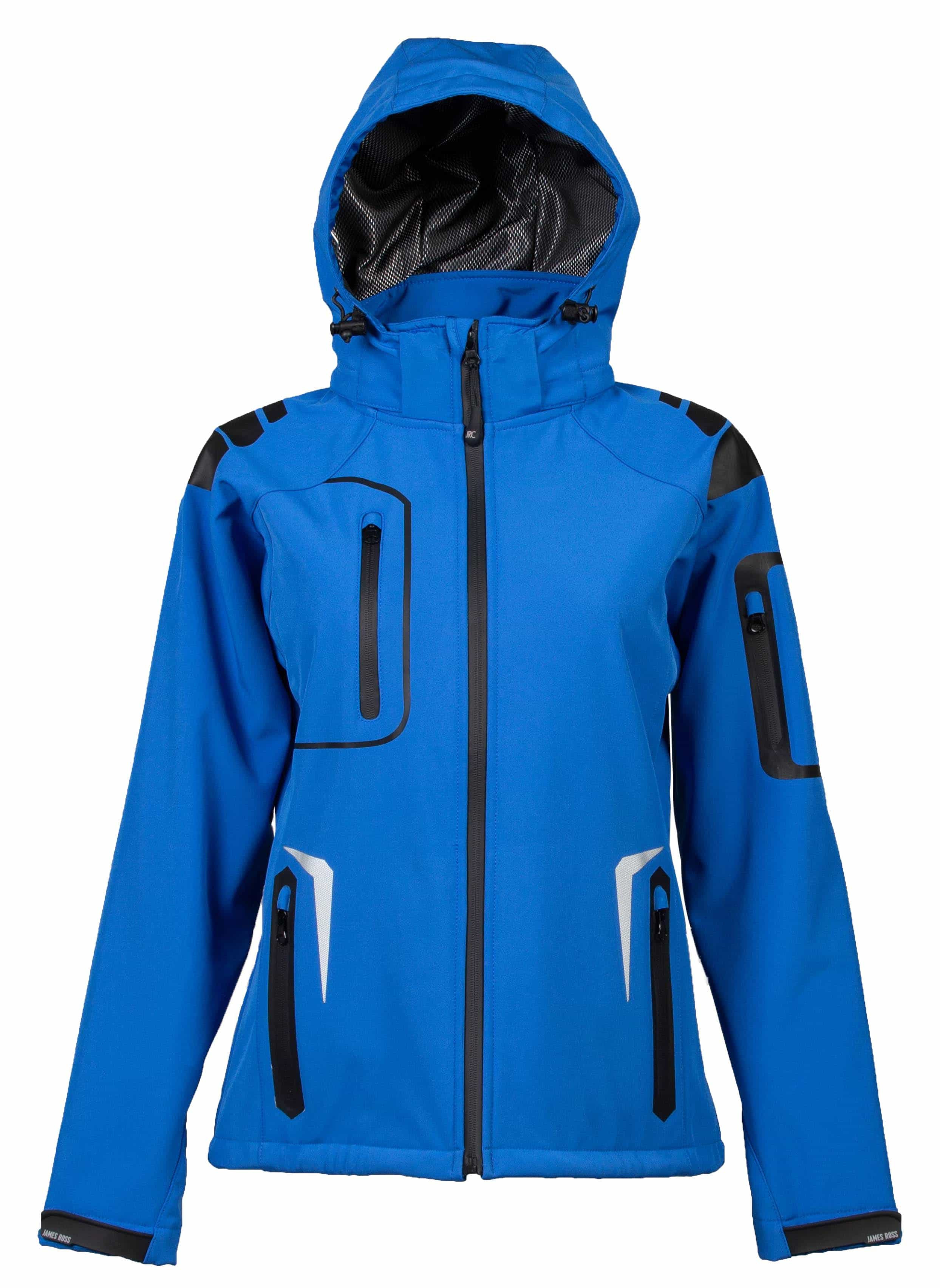 Damenjacke aus dreilagigem Softshell, wasserdicht und atmungsaktiv, entwickelt für Komfort, Wetterschutz und maximale Bewegungsfreiheit bei Outdoor- oder Arbeitseinsätzen.