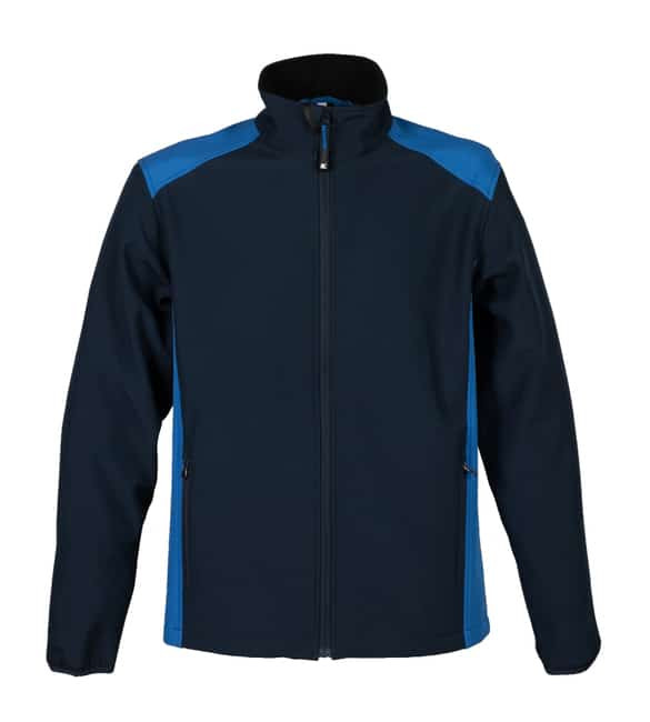 Veste bicolore en softshell bicouche avec traitement hydrofuge - 100% polyester stretch - Respirabilité 14000 g/M2/24h - Intérieur en polaire - Fermetures à glissière sur bande - Fermeture centrale YKK - Épaules et côtés contrastés - Tissu de protection mentonnière avec impression rétroréfléchissante - Deux poches extérieures à zip - Poignets en tissu élastique - Sans étiquette