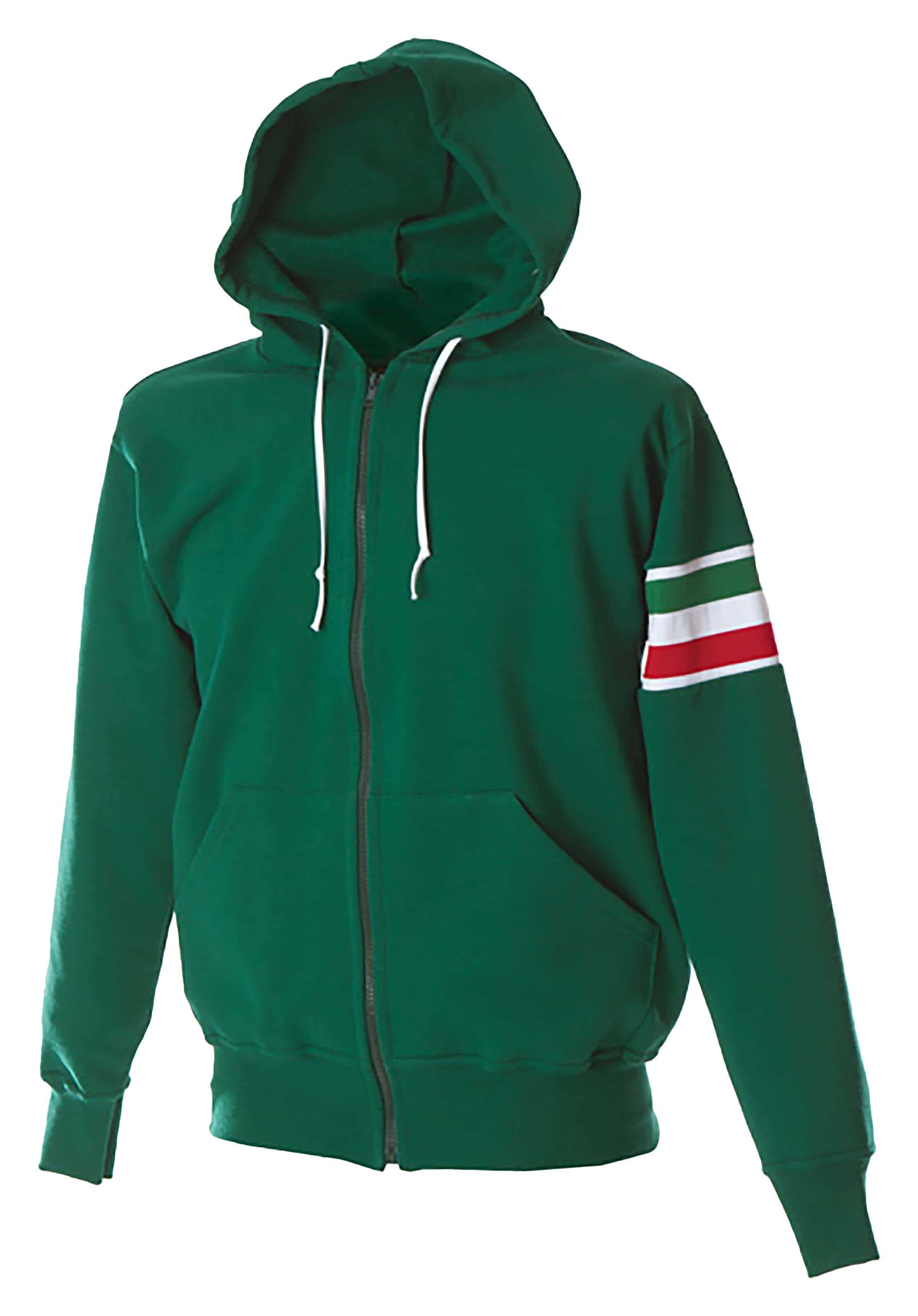Felpa made in Italy 100% cotone - Cappuccio con cordini bianchi - Zip lunga - Fascia tricolore sul braccio - Tasche a marsupio - Polsini e fondo maglia in costina h cm 8 - Cuciture ribattute