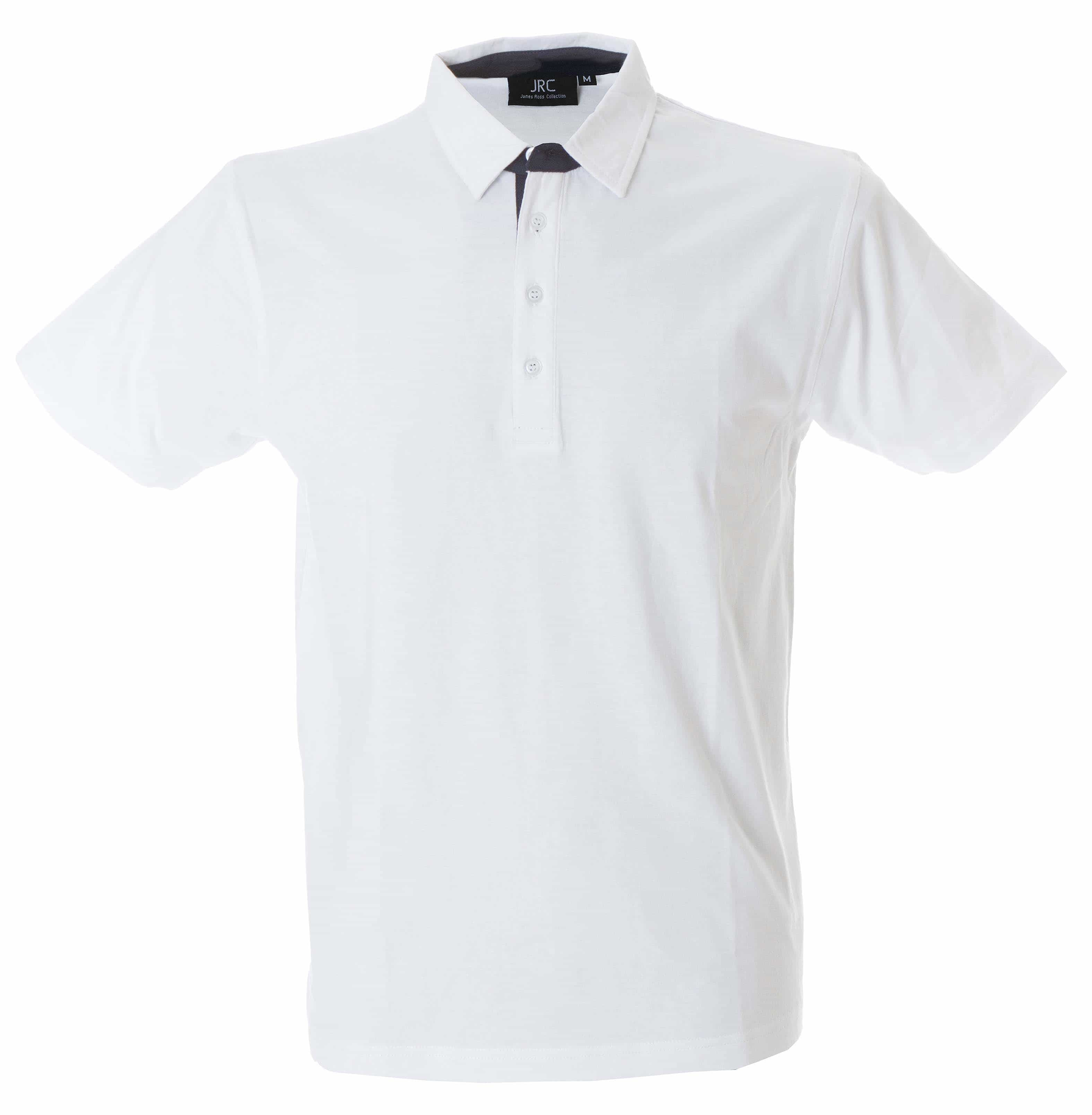 Polo manica corta in Jersey - 100% cotone pettinato - Quattro bottoni - Fascia colletto e fessino in contrasto - Imbustate singolarmente N.B. Si prega di lavare il capo prima di indossarlo la prima volta per conservarne la qualità nel tempo