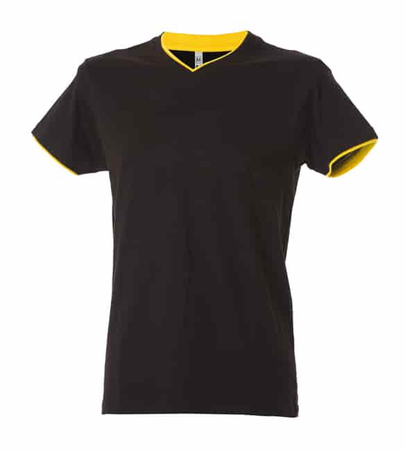 T-shirt manica corta collo a V - 100% cotone pettinato - Colletto esterno basso h cm 1.0 - Colletto interno in contrasto - Fondo manica doppio in contrasto - Cuciture laterali per una migliore vestibilità - Vendibili in busta da 5 pezzi (pronte per la stampa piegate a metà, complete di bustine singole per il rimbusto) - Non vendibili singolarmente N.B. Si prega di lavare il capo prima di indossarlo la prima volta per conservarne la qualità nel tempo N.B. Si prega di lavare il capo prima di indossarlo la prima volta per conservarne la qualità nel tempo