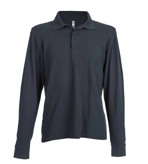 Polo manica lunga - 100% cotone piqué pettinato - Tre bottoni in tinta - Colletto e polsini in rib - Spacchetti laterali - Imbustate singolarmente - Nastro di rinforzo interno collo N.B. Si raccomanda di lavare prima di indossare per mantenere inalterato il colore