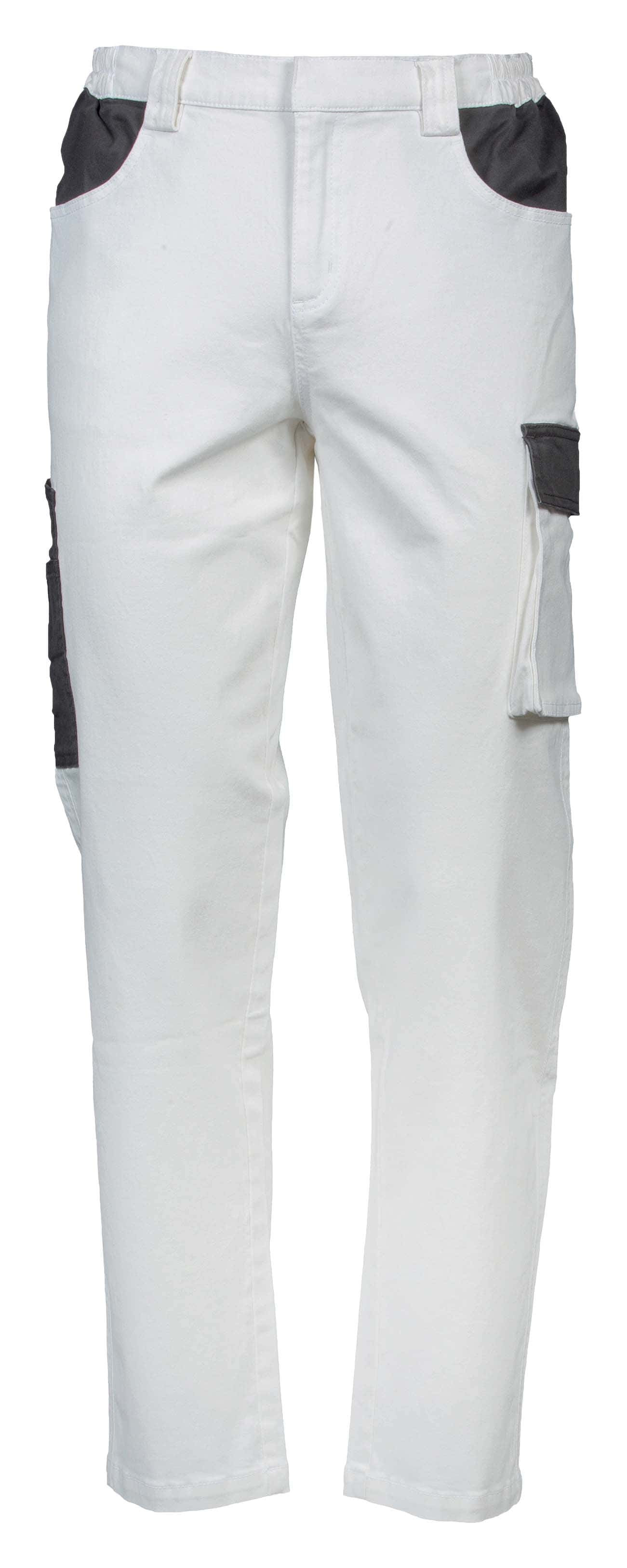 Pantalone da lavoro resistente e confortevole, realizzato in tessuto prelavato 98% cotone e 2% elastan per garantire durata e flessibilità. Il design con numerose tasche e dettagli a contrasto assicura praticità e funzionalità durante le attività lavorative.