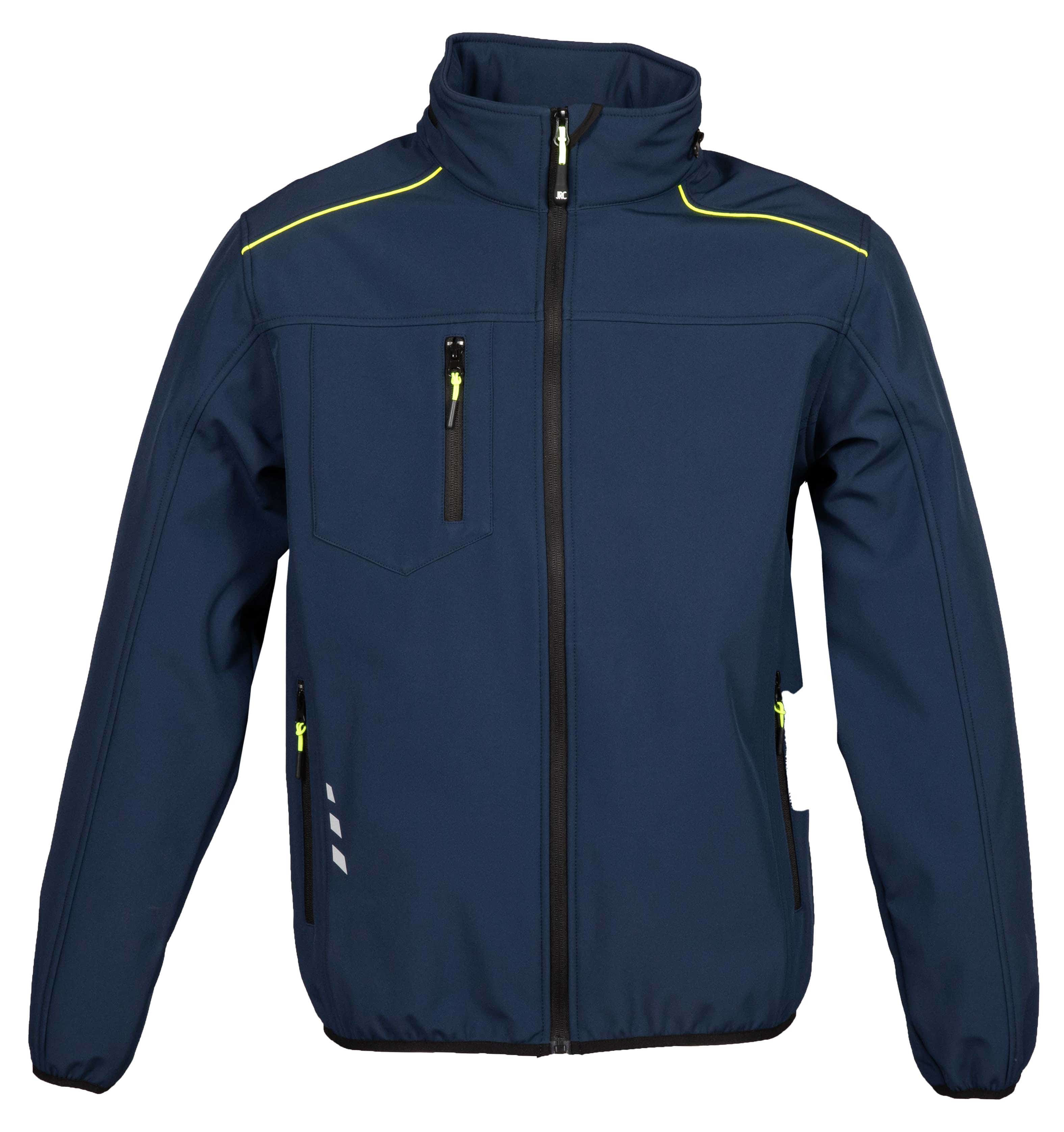 Giubbino in softshell a tre strati, impermeabile e traspirante - 96% poliestere 4% elastan - Interno in pile antipilling - Impermeabilità 8000 mm/H2O - Traspirabilità 1000 g/M2/24h - No label - Stampa rifrangente anteriore - Stampa rifrangente postierore sul fianco - Piping giallo fluo anteriore sulle spalle e posteriore sulla schiena - Cappuccio estraibile mediante zip - Cerniere nastrate - Una tasca sul petto con zip - Due tasche esterne con zip - Tessuto a protezione del mento con logo 4STRETCH - Tessuto elastico ai polsi - Tessuto elastico al fondo