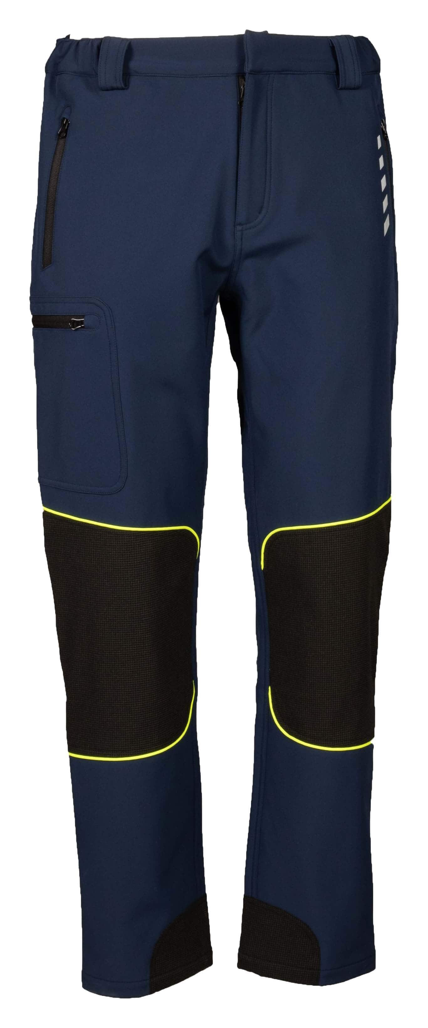 PANTALONE IN SOFT SHELL A 3 STRATI IMPERMEABILE - 96% poliestere 4% elastane - Impermeabilità 8000 mm/H2O - Traspirabilità 1000 g/m2/24h - Tessuto antiabrasione 92% polyestere - 8% elastan - Interno in pile antipilling - Stampa rifrangente anteriore e posteriore - Cerniere nastrate - Due tasche esterne con zip - Una tasca laterale con zip - Doppia tasca posteriore portametro e portautensili, con piping giallo fluo e logo 4STRETCH - Una tasca posteriore con velcro - Tessuto antiusura sulle ginocchia con piping giallo fluo - Tessuto antiabrasione nella parte interna del fondo gamba - Elastici in vita e passanti maggiorati - Bottone automatico in vita coperto - No label CORRISPONDENZA TG.: S42/44 M46/48 L50/52 XL54/56 XXL58/60 3XL62/64