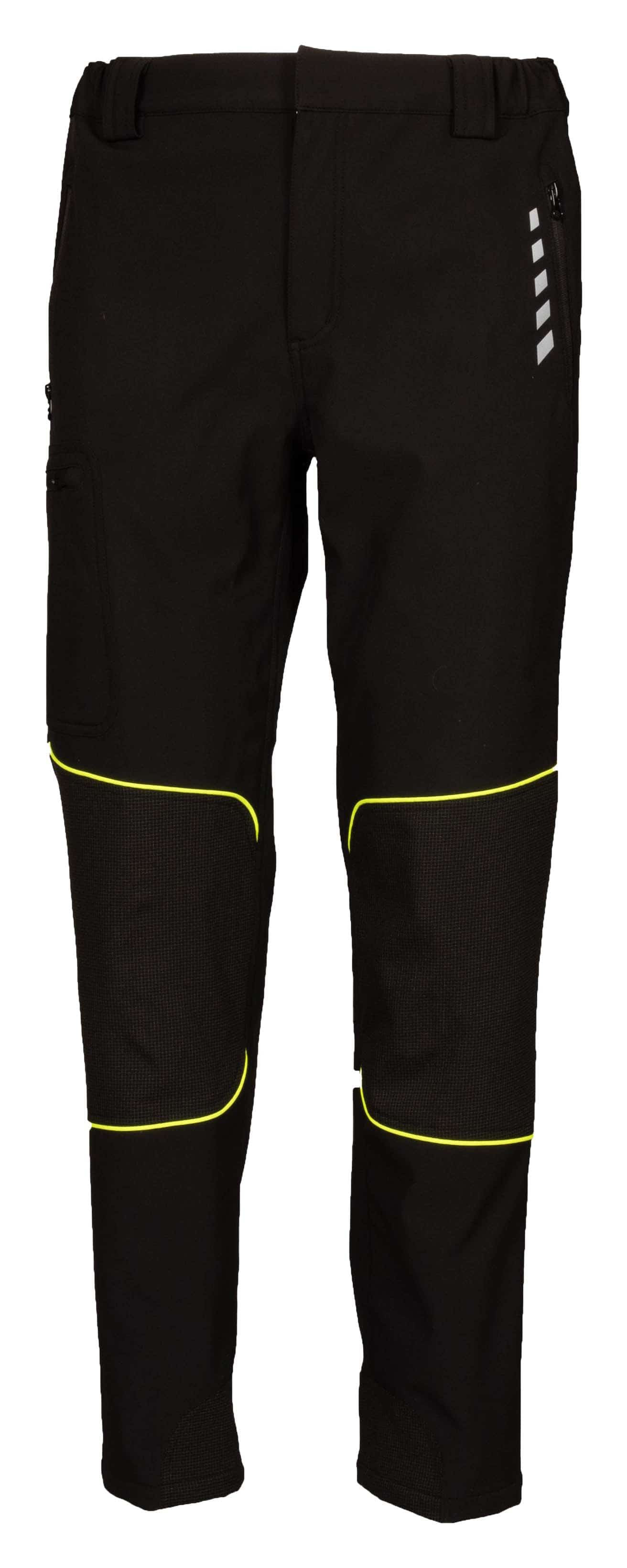 PANTALONE IN SOFT SHELL A 3 STRATI IMPERMEABILE - 96% poliestere 4% elastane - Impermeabilità 8000 mm/H2O - Traspirabilità 1000 g/m2/24h - Tessuto antiabrasione 92% polyestere - 8% elastan - Interno in pile antipilling - Stampa rifrangente anteriore e posteriore - Cerniere nastrate - Due tasche esterne con zip - Una tasca laterale con zip - Doppia tasca posteriore portametro e portautensili, con piping giallo fluo e logo 4STRETCH - Una tasca posteriore con velcro - Tessuto antiusura sulle ginocchia con piping giallo fluo - Tessuto antiabrasione nella parte interna del fondo gamba - Elastici in vita e passanti maggiorati - Bottone automatico in vita coperto - No label CORRISPONDENZA TG.: S42/44 M46/48 L50/52 XL54/56 XXL58/60 3XL62/64