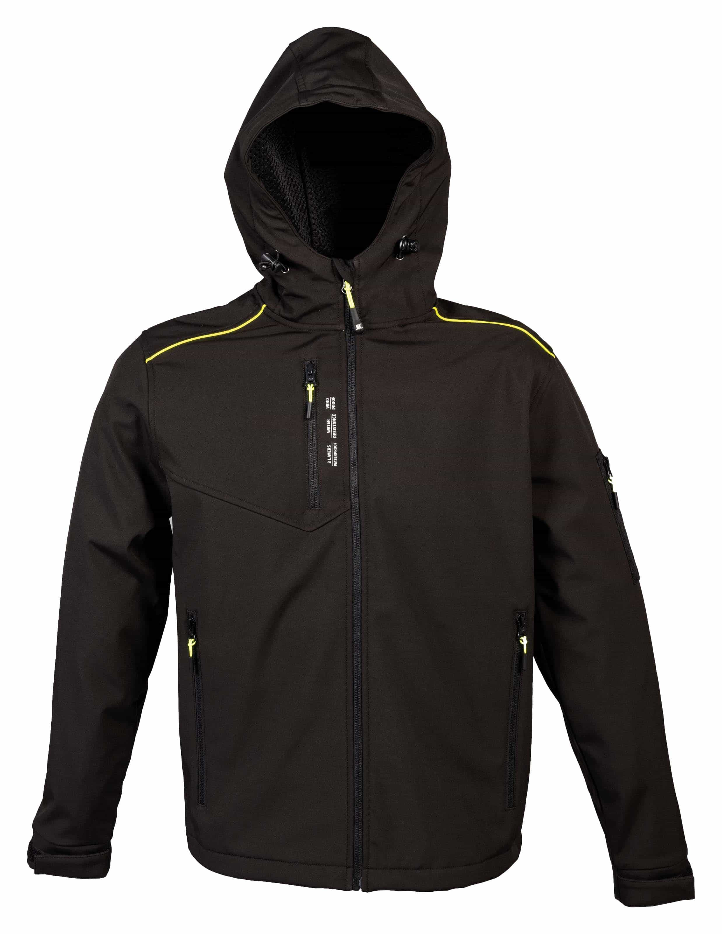 Giubbino softshell a 3 strati impermeabile e traspirante, progettato per offrire comfort termico, protezione dagli agenti atmosferici e praticità nelle attività outdoor e lavorative leggere.