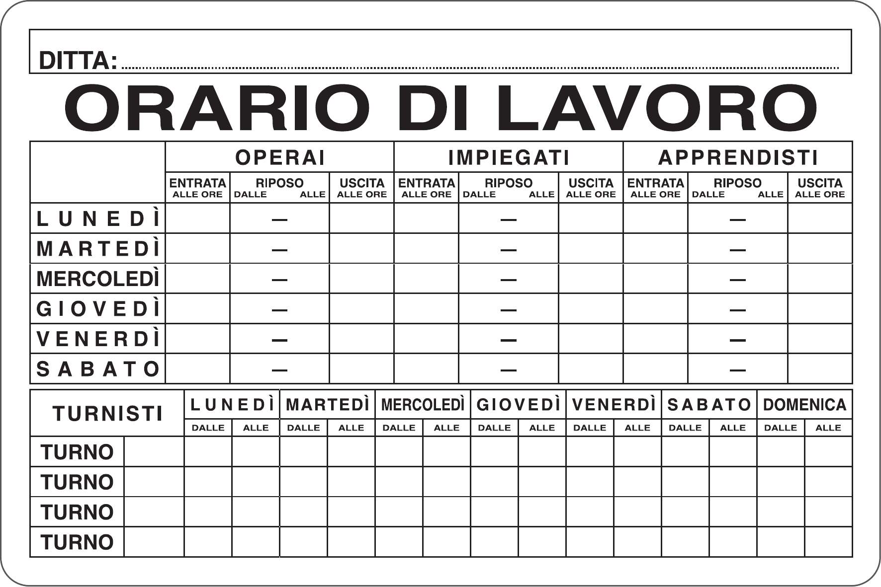 Cartello All. Orario Lavoro Settimanale Con Spazi Scrivibili