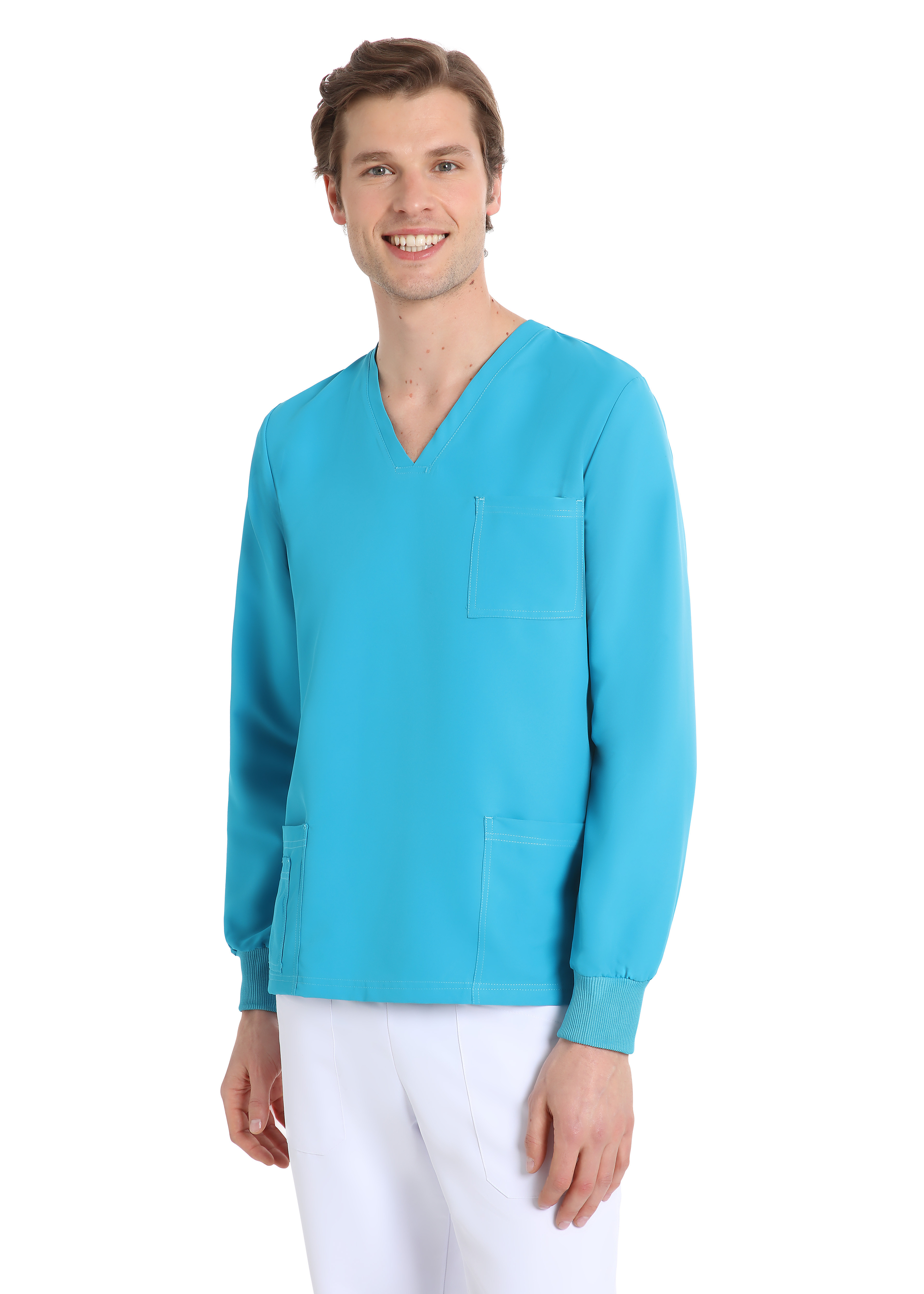Scopri la Casacca Smart Unisex Turquoise con manica lunga, realizzata in un tessuto tecnico innovativo, completamente no stiro e lavabile fino a 90°.