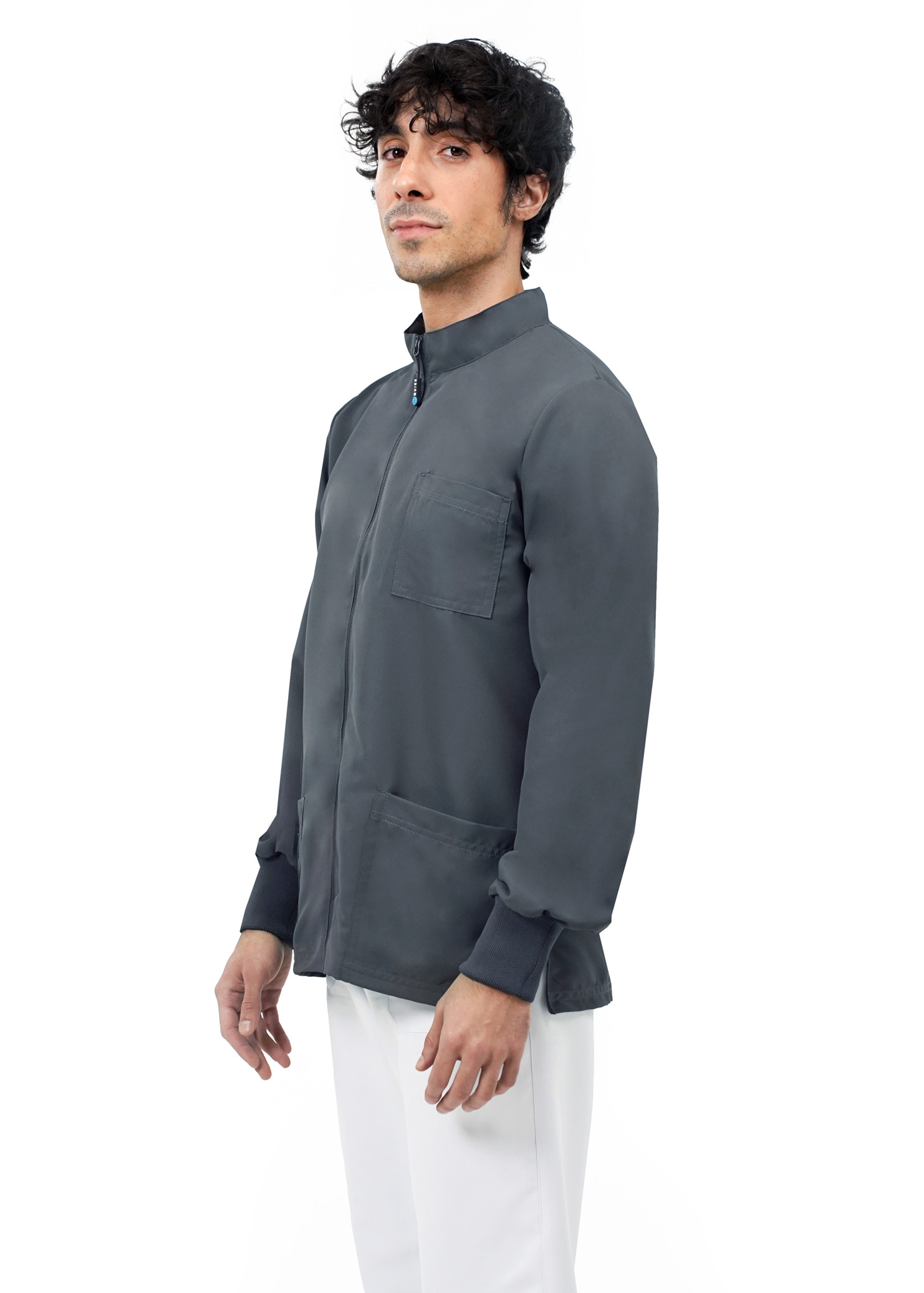 Casacca unisex con colletto alto e zip intera rovesciata con doppio cursore (massima comodità anche da seduti). Un taschino e due tasche. Manica lunga e spacchetti laterali. Veste bene sia uomini che donne. Colore brillante.