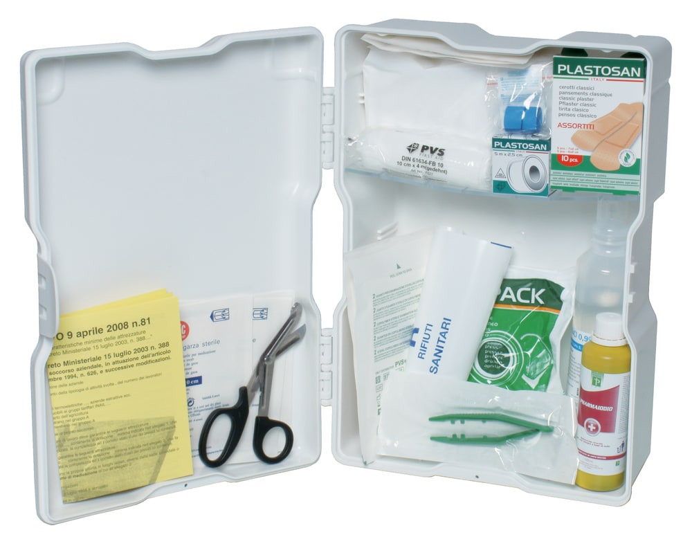 Ideale per aziende o ambienti di lavoro con meno di tre lavoratori o appartenenti al gruppo C secondo il D.M. 388/03. Contiene i presidi minimi obbligatori per il primo intervento in caso di infortunio sul luogo di lavoro.